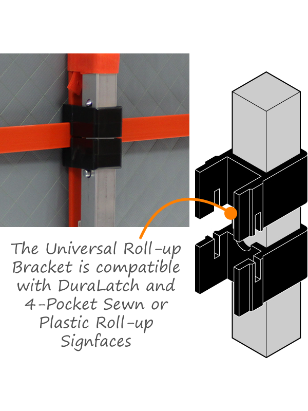 - The universal roll-up bracket holds roll-up signs 12" - 84" from the ground, and the rigid bracket holds aluminum, plywood, plastic or aluminum laminate signs 60" from the ground.