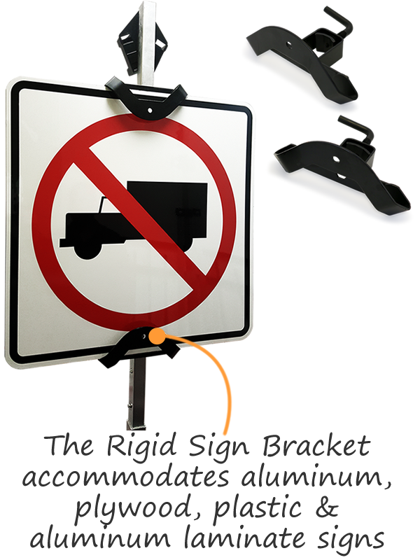 - Rigid brackets can accommodate any rigid sign up to 4 x 6 ft. (48" x 72") in size.