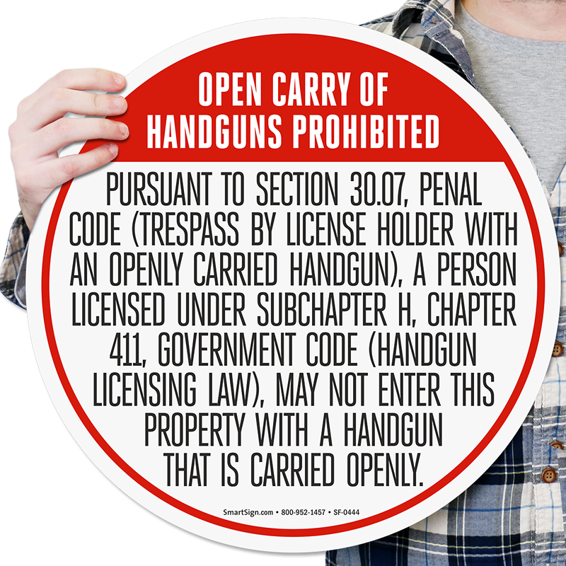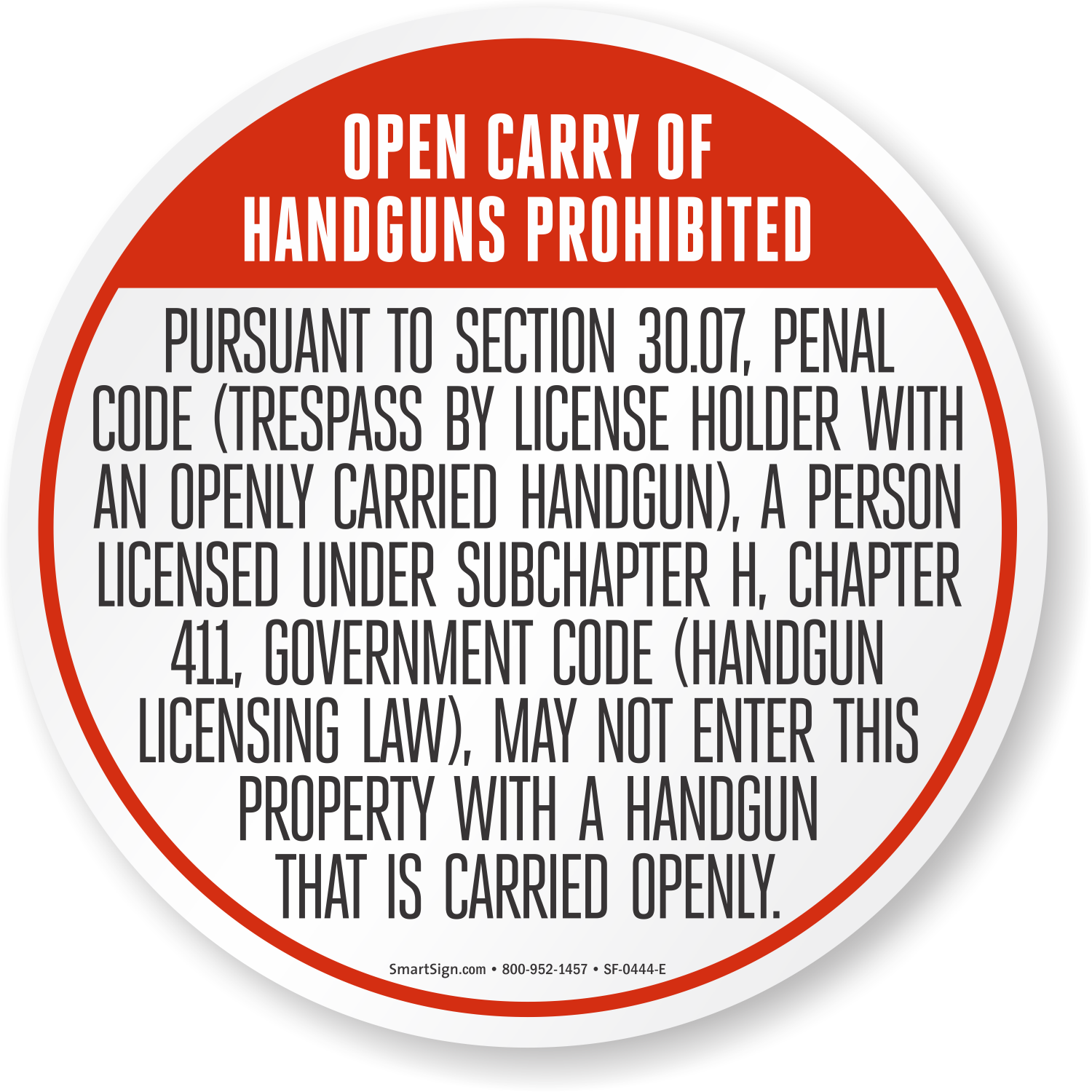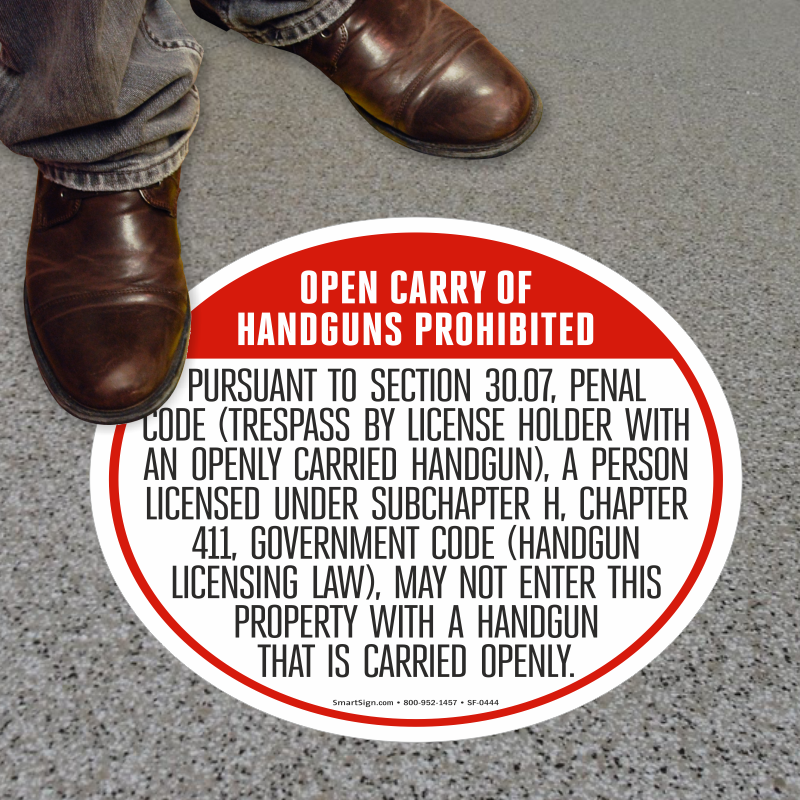 Texas Open Carry Regulations §30.07 Floor Sign In English